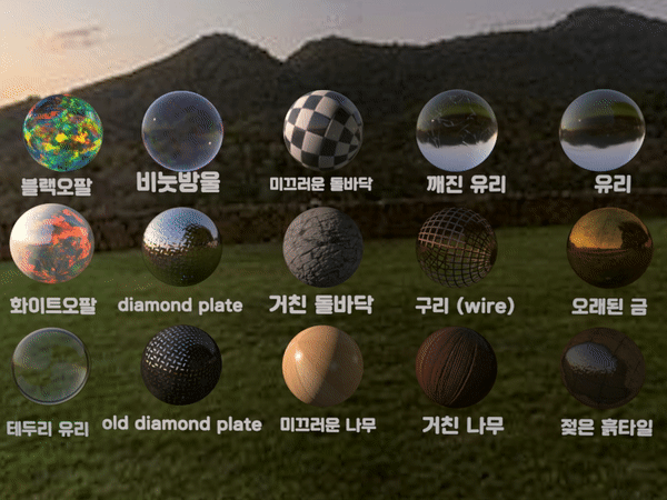 하지만 움직이는 것까지 만들기는..많이 어려울 것 같고.. 해서 우선은 비눗방울의 reflection에 텍스쳐만 씌웠습니다. (끝)