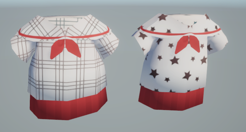 각각의 옷에 Keyword로 분기점을 나눈 머테리얼을 무늬만 바꿔서 적용해보고 SetPass call을 확인한다.