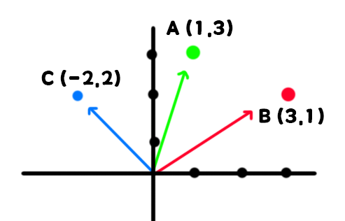 저번에 했던 벡터의 덧셈과 마찬가지로 (1-3,3-1)과 같이 계산해서 나온 결과가 C,즉 (-2,2)이다.