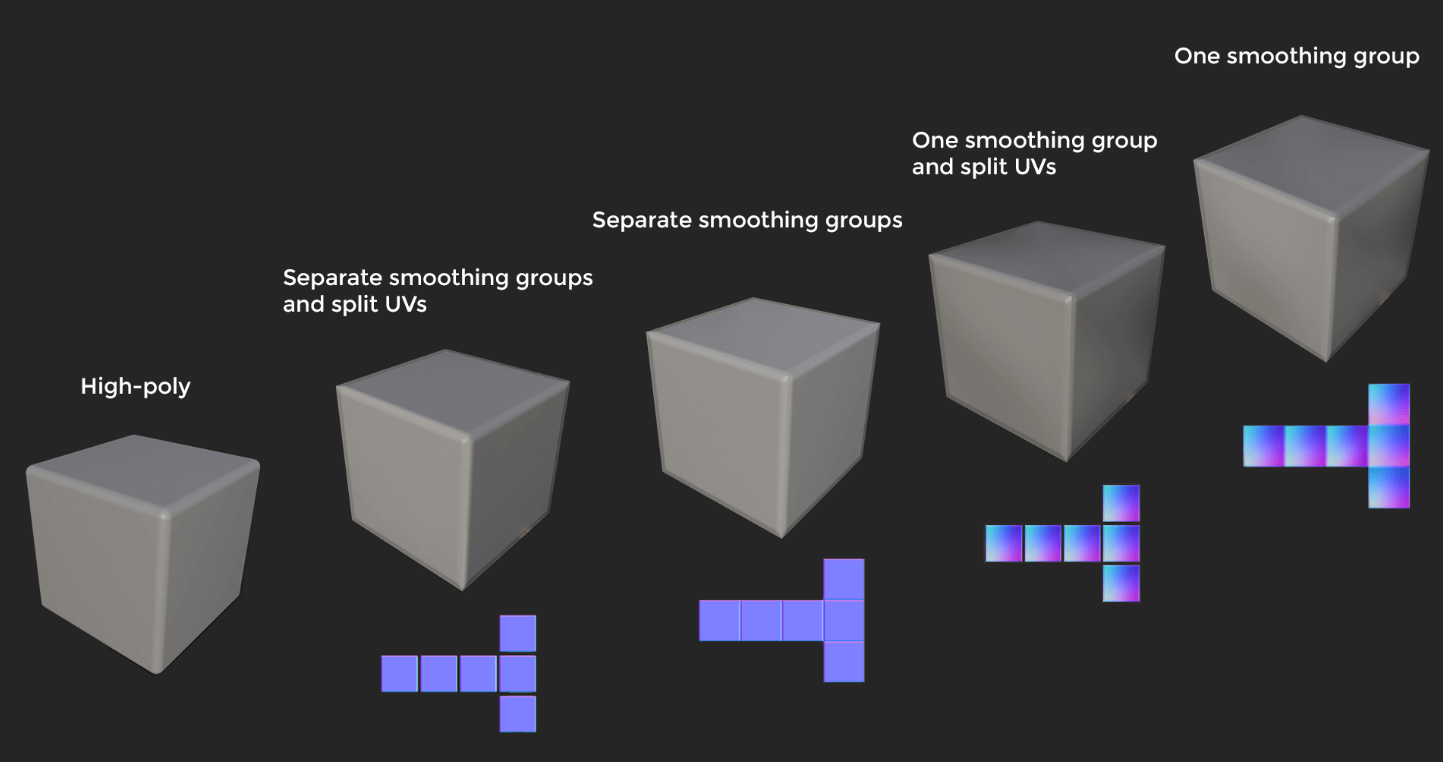 노말맵 베이킹 시 툴은 UV 좌표를 기준으로 픽셀 색상(노말 방향 정보)을 결정해야 하는데, UV 상으로는 하나인 버텍스가 실제 3D 공간에서는 여러 개의 노말 방향을 가지고 있으니 어떤 방향을 기준으로 샘플링해야 할지 혼란이 발생한다.
