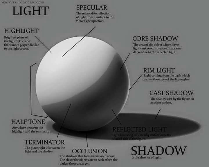 형태감 표현을 위해서 먼저 빛과 그림자를 이해하는 것이 중요하기 때문에, 그런 요소들을 중심으로 핀터레스트에서 자료를 찾아봤다. 백업도 하고 나중에 다시 볼 겸 업로드함.